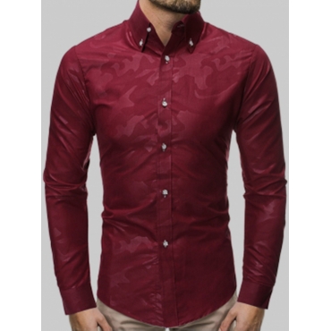 Lovely Casual Turndown Collar Print Wine Red Men Shirt