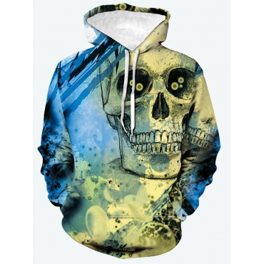 Lovely Street Hooded Collar Skeleton Print Blue Men Hoodie
