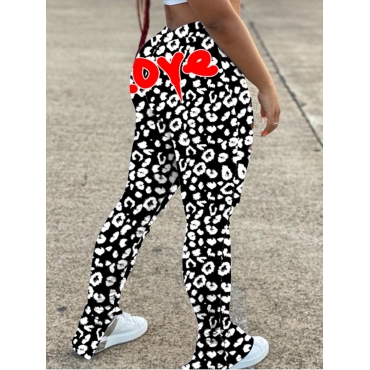 Lovely Street Letter Leopard Print Ripped Black Pants