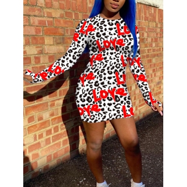 Lovely Casual Letter Leopard Print White Mini Dress(No-positioning Printing)