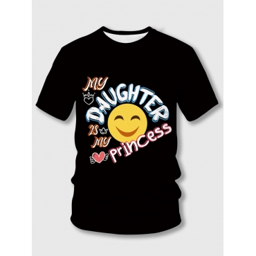 Lovely Casual O Neck Smiley Face Print Black Girl T-shirt