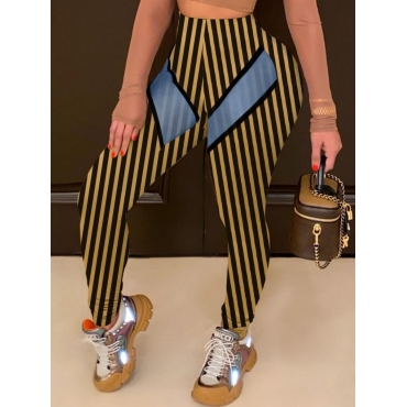 Lovely Casual Striped Mesh Patchwork Brown Pants(No-positioning Printing)