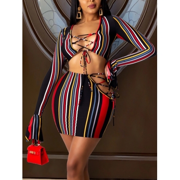 Lovely Sexy Striped Bandage Hollow-out Design Black Two Piece Skirt Set (No-positioning Printing)