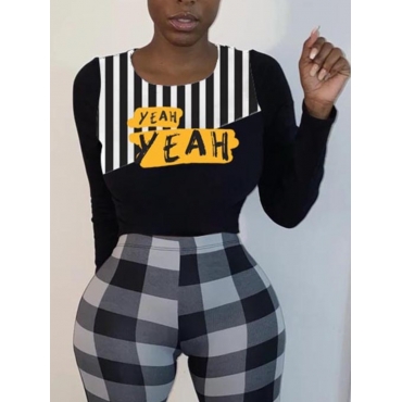 Lovely Sweet Letter Print Striped Black T-shirt