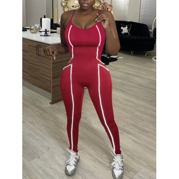Lovely Sportswear U Neck Striped Red One-piece Jumpsuit