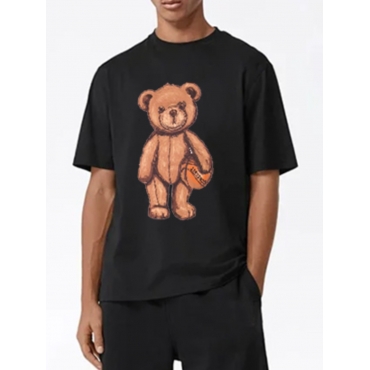 Lovely Casual O Neck Cartoon Print Black Men T-shirt