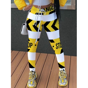 Lovely Street Letter Print Striped Yellow Pants