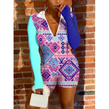 Lovely Sweet Geometric Print Patchwork Rose One-piece Romper(No-positioning Printing)