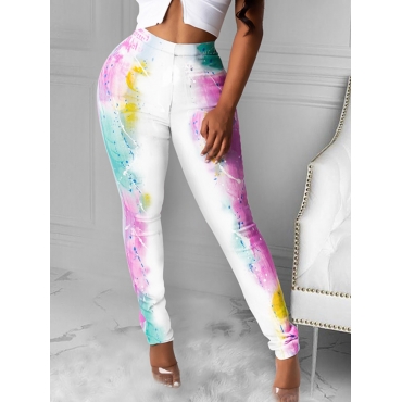 Lovely Casual Mid Waist Tie-dye Blue Pants