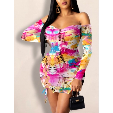 Lovely Sexy Off The Shoulder Bandage Hollow-out Design Pink Mini Dress(No-positioning Printing)