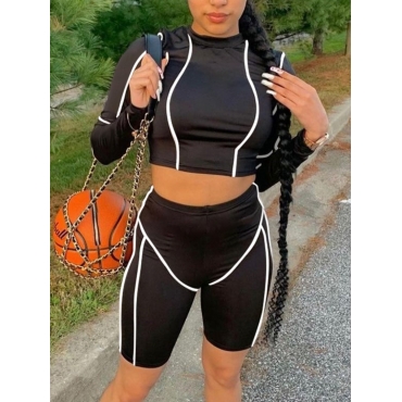 Lovely Sportswear O Neck Striped Black Two-piece Shorts Set
