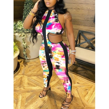 Lovely Street Backless Striped Tie-dye Pink One-piece Jumpsuit