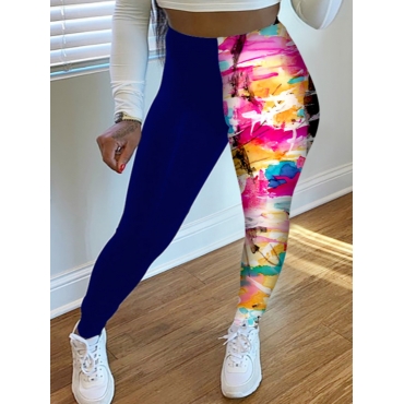 Lovely Casual Splash Ink Print Patchwork Blue Pants