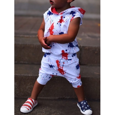Lovely Street Hooded Collar Splash Ink Print White Boy Two Piece Shorts Set