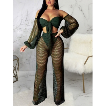 Lovely Trendy Off The Shoulder See-through Bandage Design Green Cover-up