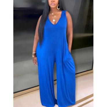 Lovely Casual Hooded Collar Pocket Design Loose Blue One-piece Jumpsuit