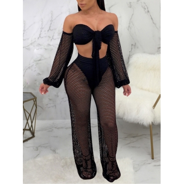 Lovely Trendy Off The Shoulder See-through Bandage Design Black Cover-up