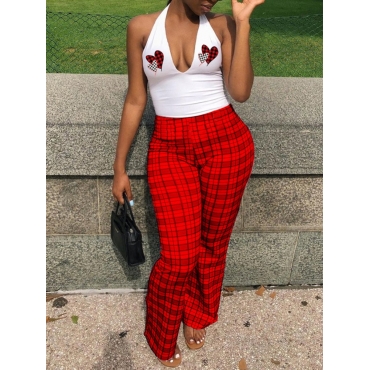 Lovely Sweet Off The Shoulder Plaid Print White Plus Size Two-piece Pants Set