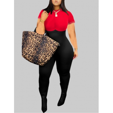 Lovely Trendy O Neck Patchwork Red Plus Size One-piece Jumpsuit