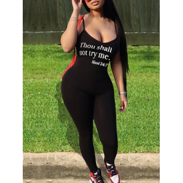 Lovely Chic U Neck Letter Print Black One-piece Jumpsuit