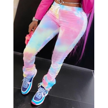 Lovely Casual Tie-dye Fold Design Multicolor Plus Size Pants