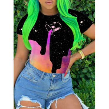 Lovely Casual O Neck Graffiti Print Black T-shirt