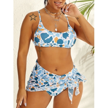 Lovely Sweet U Neck Leopard Print Knot Design Blue Two-piece Swimsuit