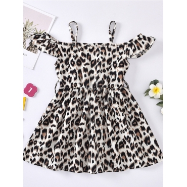 Lovely Sweet Flounce Design Leopard Print Girl Knee Length Dress