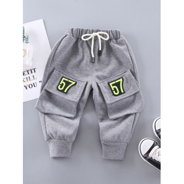 Lovely Sportswear Pocket Design Drawstring Grey Boy Pants