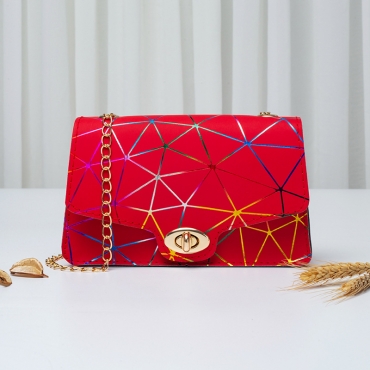 Lovely Stylish Geometric Print Metal Accessories Decoration Bright Red Crossbody Bag