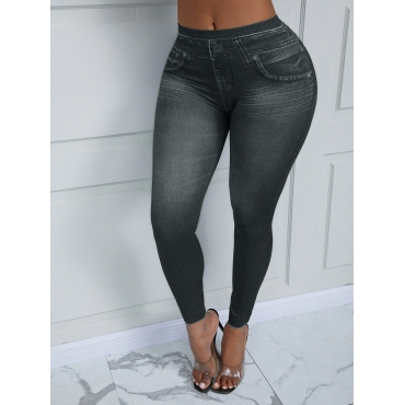 Lovely Casual High-waisted Gradient Skinny Black Pants
