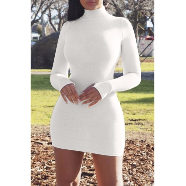 Lovely Casual Turtleneck Skinny White Mini Dress