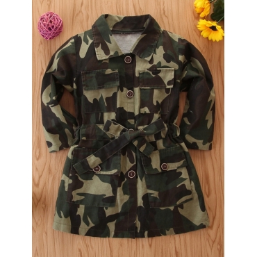 Lovely Trendy Turndown Collar Camo Print Girl Trench Coat
