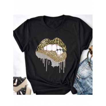 Lovely Casual Lip Print Black Plus Size T-shirt