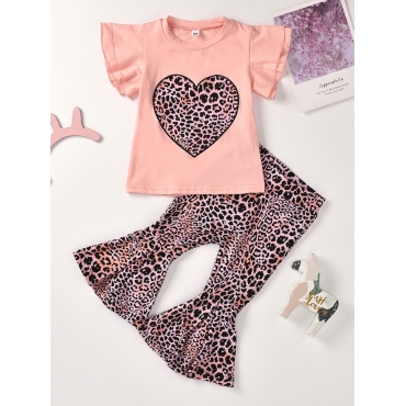 Lovely Casual O Neck Print Pink Girl Two-piece Pants Set