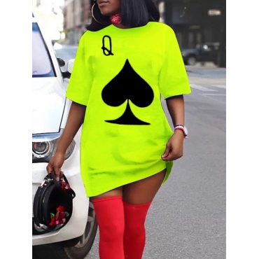 Lovely Leisure O Neck Print Green Mini Plus Size Dress
