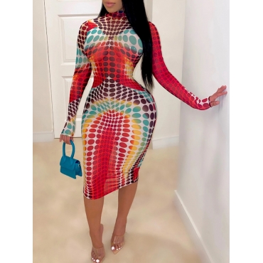 Lovely Trendy Print Multicolor Knee Length Plus Size Dress