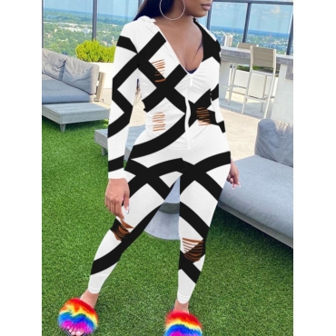 Lovely Casual Geometric Print Ripped White One-piece Jumpsuit