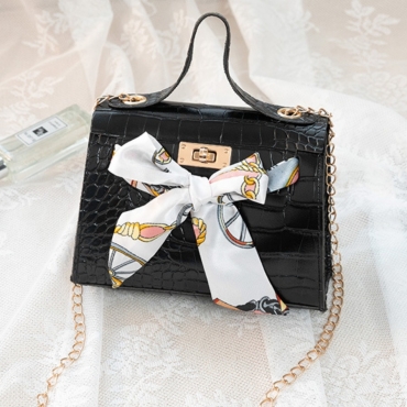 Lovely Elegant Metal Accessories Decoration Knot Design Black Crossbody Bag