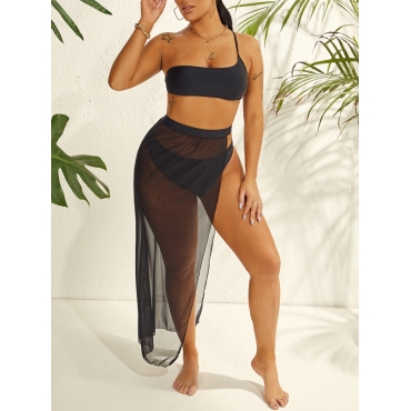 Lovely Casual One Shoulder Mesh Patchwork Black Two-piece Swimsuit