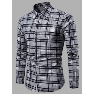 Lovely Formal Plaid Print Patchwork Grey Men Shirt