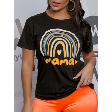 Lovely Casual O Neck Heart-shaped Letter Print Black T-shirt