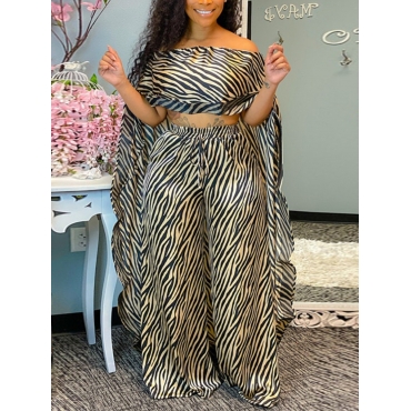 Lovely Casual Off The Shoulder Animal Print Loose Apricot Two Piece Pants Set
