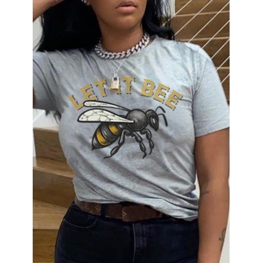 Lovely Casual Bee Letter Print Grey T-shirt
