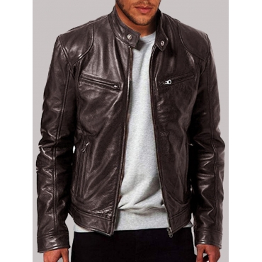 Lovely Casual Mandarin Collar Zipper Design Brown Men Jacket