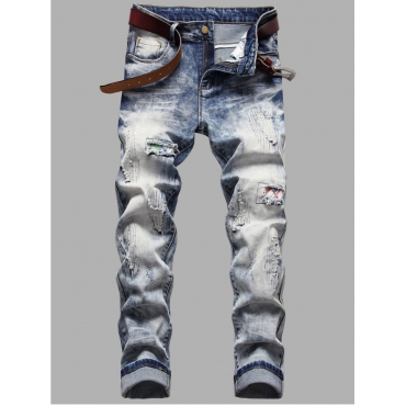 Lovely Casual Tie-dye Broken Holes Blue Men Jeans