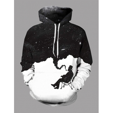 Lovely Casual Starry Sky Print Kangaroo Pocket Black Men Hoodie