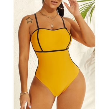 Lovely Casual Striped Patchwork Yellow One-piece Swimsuit