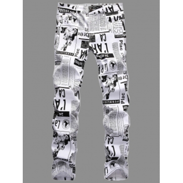 Lovely Street Newspaper Letter Print Black Men Jeans