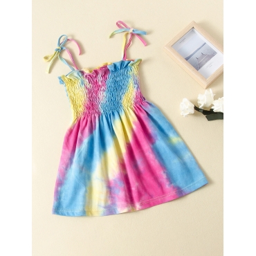 Lovely Sweet Tie-dye Fold Bandage Design Multicolor Girl Knee Length Dress
